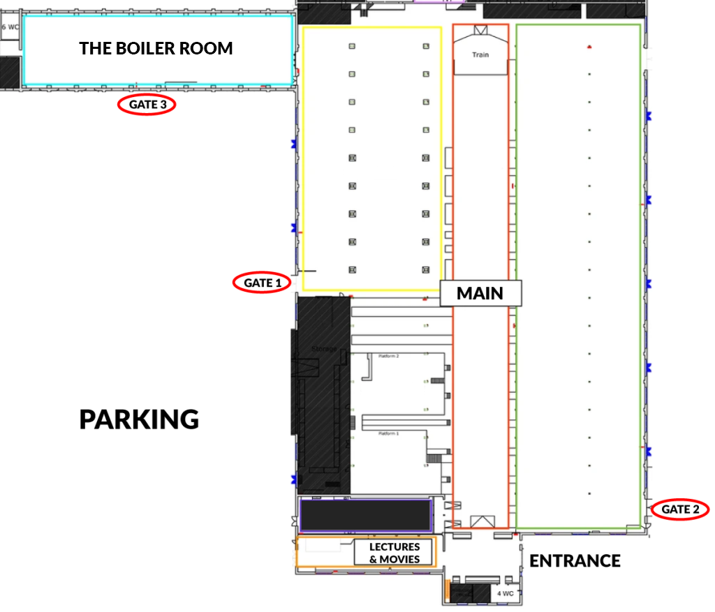 Den tekniske afdeling er placeret ved indgangen/billetsalget.